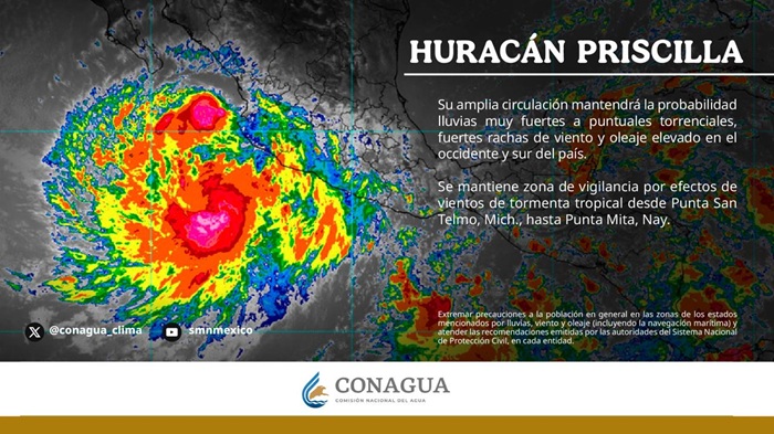 El SMN y Conagua reiteran: no subestimes a Priscila . Aunque se mantenga mar adentro, sus efectos secundarios pueden ser tan peligrosos como un impacto directo.