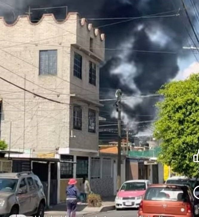 Ciudad de México.— Un fuerte incendio en una fábrica de hule espuma mantiene en alerta a habitantes de Santa Martha Acatitla, en la alcaldía Iztapalapa.