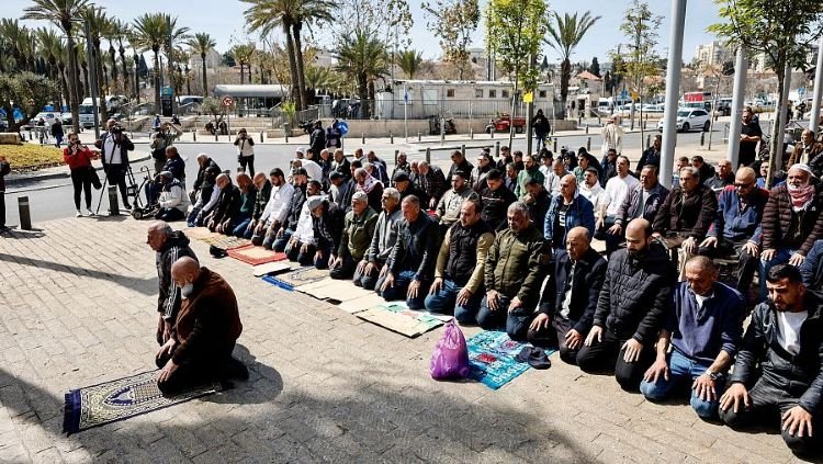 Ante la imposibilidad de ingresar, algunos fieles extendieron sus alfombras de oración frente a la Puerta de Damasco, uno de los accesos más emblemáticos de la Ciudad Vieja. Allí, el imán Musa Sahari dirigió el rezo del mediodía acompañado por decenas de hombres que, con serenidad y resignación, realizaron sus plegarias al aire libre.