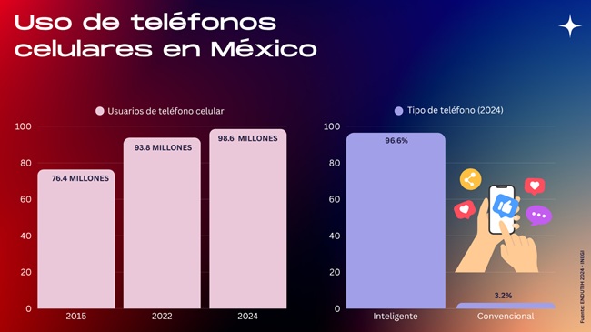 México, 6 de agosto de 2025 — El teléfono celular ya no es solo un dispositivo: es la llave al mundo digital. En México, 98.6 millones de personas —el 81.7% de la población— ya usan smartphones, según la Encuesta Nacional sobre Disponibilidad y Uso de Tecnologías de la Información en los Hogares (ENDUTIH) del INEGI 2024.